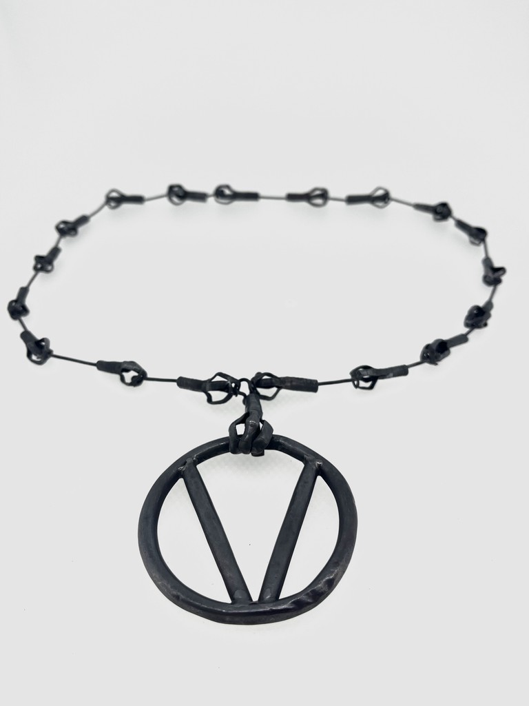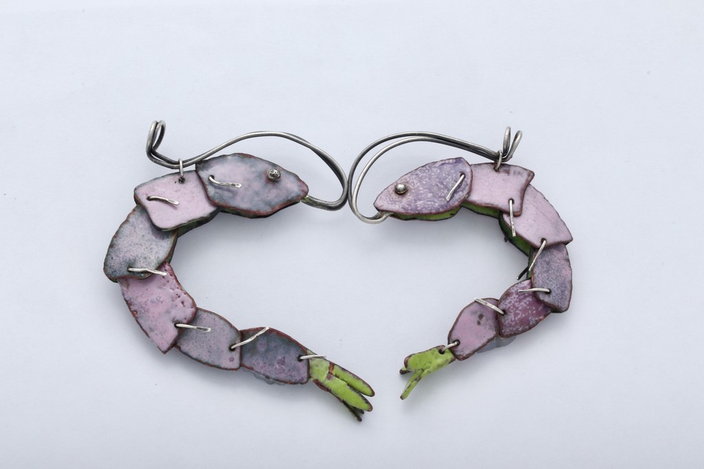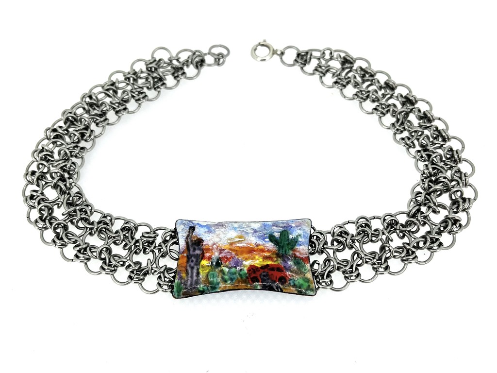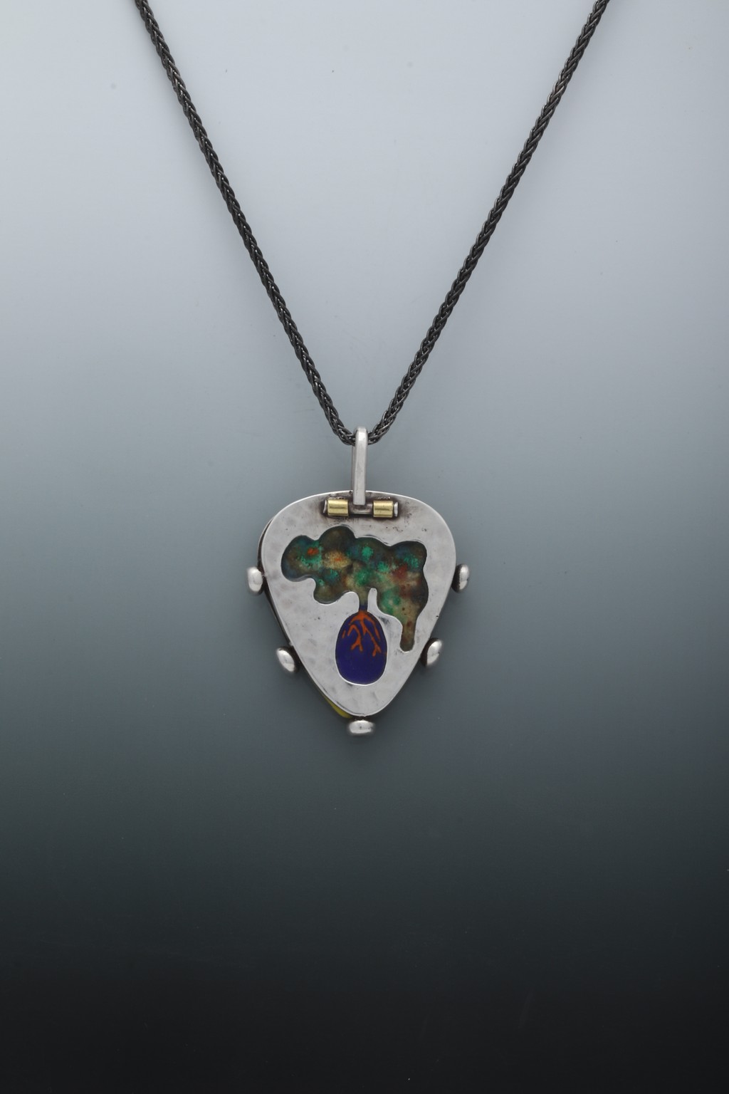 Enamel on copper, silver, cotton cord